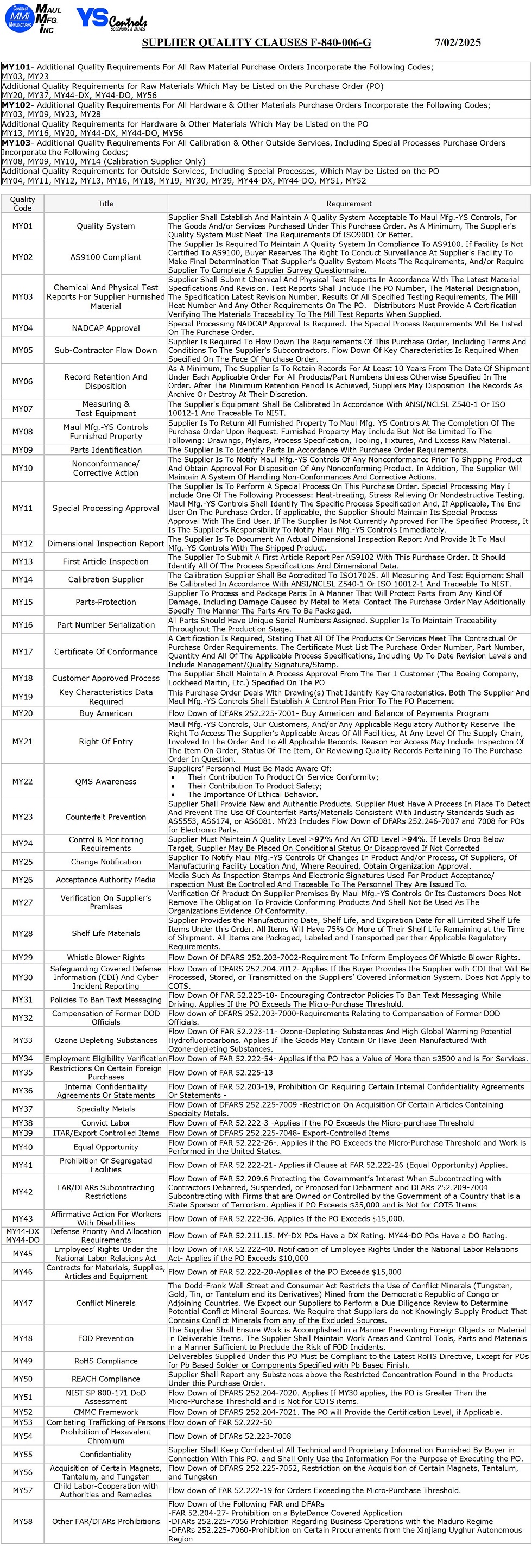 Supplier Quality Clauses